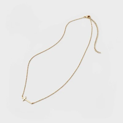 Get inspired with the 14K Gold Plated Stationed Cross Pendant Necklace from A New Day™. This gold-plated necklace features a cross pendant dangling at the center of the linked chain for a beautiful look. Designed with an extender chain for length customization, this cross necklace closes with lobster-claw clasp, and suit all types of skin with its nickel-free design.