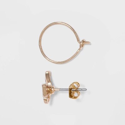 Bring on the sparkle with the Eight-Pair Cubic Zirconia Earring Set from A New Day™. This set includes several pairs of studs, from front-facing hoops to butterflies, as well as two pairs of hoop earrings with integrated loop backs, all in a mix of gold- and silver-tone finishes. Wear pairs separately for a simple, minimalist jewelry look, or easily coordinate two or more pairs together for multiple ear lobe piercings.