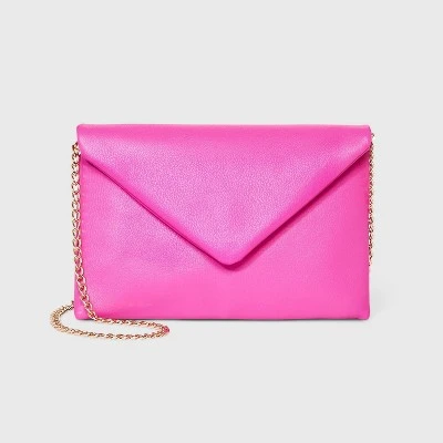 From daytime to date night and more, you can stash your everyday essentials while adding a chic accessory to your outfit with this Magnetic Closure Envelope Clutch from A New Day™. Designed in a rectangular envelope shape with a convenient magnetic flap closure, this lined clutch bag also features an interior zip pocket and an exterior slip pocket on the back to help you keep your cash keys, phone and other essentials neatly organized. Plus, a chic gold-finish chain link shoulder strap lets you style this envelope clutch as a crossbody bag for hands free wear, or you can tuck the strap into the purse and carry the clutch in your hand for a more elegant evening look.