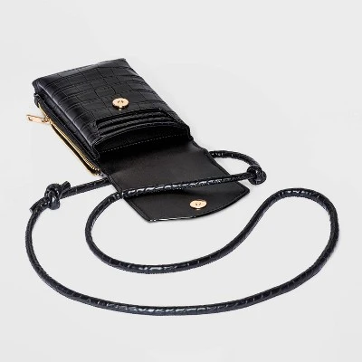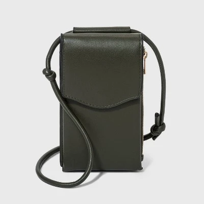 From an evening walk to running errands, carry your phone and cards safely in this Phone Crossbody Bag from A New Day™. Featuring a rectangular silhouette, this wristlet crossbody phone bag features a phone pocket and three card slots secured by a magnetic snap closure. Plus, an exterior zip pocket lets you keep small items at hand. Featuring a faux-leather design for chic appeal, it has a shoulder strap for slinging across your shoulder for easy carrying.
