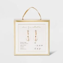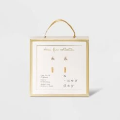 14K Gold Plated Cubic Zirconia And Bar Stud Duo Earrings – A New Dayâ„¢