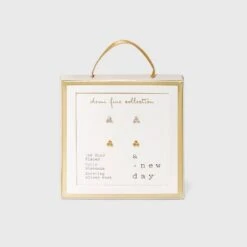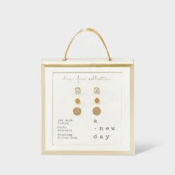 14K Gold Plated Cubic Zirconia Ball Pave Trio Stud Earring Set – A New Dayâ„¢ Gold