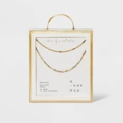 14K Gold Plated Flat Beaded And Link Chain Duo Necklace – A New Dayâ„¢ Gold