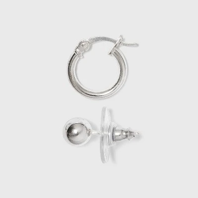 You’ll have everything you need with this Sterling Silver Studs and Hoop Earrings Set for a stylish, everyday look. The set includes a pair of small hoop earrings, silver sphere studs and sparkly studs — so you’ll have the perfect pair for every occasion. Mix and match them for a fun, unique style or wear whichever pair fits your look for the day.