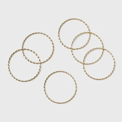 This 6-Piece Twisted Bangle Bracelet Set from A New Day™ adds beautiful texture to your jewelry collection. Each bracelet piece features a twisted bangle design in a versatile gold-tone finish and comes with a pull-on style for easy wear. You can wear this shiny metal bangle bracelet set on its own or matched with other jewelry for a variety of fun looks.