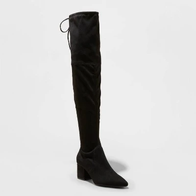 Show off your unique style with these Greta Tall Dress Boots from A New Day™. These tall boots feature an over-the-knee height with a 2.25-inch block heel and pointed toe for an elevated look, and the cushioned insole keeps you moving through the day in absolute comfort. A side zipper closure allows for easier on and off, and the tie closure at the top lends you a snug fit. Simply pair them with anything from dresses to jeans and a crewneck sweater for a variety of sleek, chic outfit options.