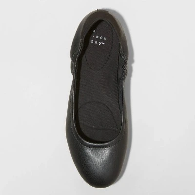 Revive your love for classic and elegant style with these Meredith Ballet Flats from A New Day™. These black ballet flats have a pebbled faux-leather upper with side shirring and an elegant round closed-toe design for a polished look. Featuring a minimal and comfortable design with a removable footbed and no heel, these slip-on shoes are perfect for meeting your everyday needs and also easy to pair with dressier ensembles.