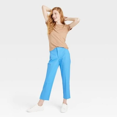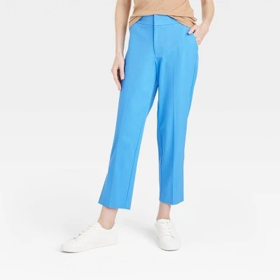 Move through office meetings to after work hangouts in effortless style and comfort with these Mid-Rise Slim Straight Fit Side-Split Trousers from A New Day™. The mid-rise slim trousers are crafted from soft fabric with a hint of spandex that lends a sculpted look, while fly hook and zipper closure with belt loops offers a comfortable fit. The ankle-fit silhouette with side split at the hem shows off your stylish footwear, while front and back pockets add functional flair to your look. Pair with a range of tops for versatile styling.