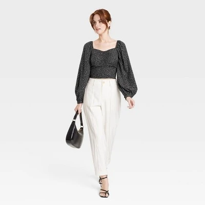 Add style to your paired-back ensembles with this Long Balloon-Sleeve Slim-Fit Ruched Front Top from A New Day™ . This balloon-sleeve top fashioned in a slim fit with a cropped at-waist length features a ruched front and a smocked finish on the elastic back for fitted style. The midweight fabric offers a comfortable drape, and the pullover design allows for easy wear.