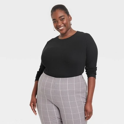 Expand your collection of basics with this Long-Sleeve Slim-Fit Crewneck T-Shirt from A New Day™. This long-sleeve T-shirt in a solid color features a classic crewneck, a ribbed design and a slim silhouette for a fitted look. The casual tee is made from soft, stretchy cotton-blend material for a comfortable fit, and is ideal for layering or wearing on its own. Wear with your choice of bottoms to create a range of versatile styles.