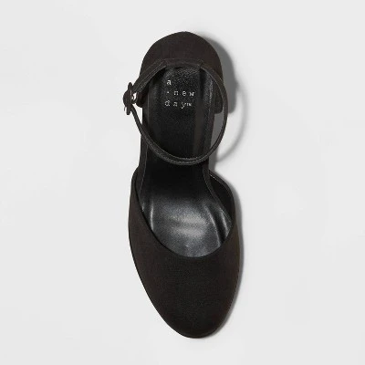 Give yourself an elevated look and sleek style with these Noir Platform Pumps from A New Day™. These medium-width platform pumps feature a foam insole and closed-toe and back design for breathable comfort, plus a 4.25in block heel to add comfortable height to your look. In a solid hue, these sandals have an adjustable buckle strap closure for a secure fit and easily pair with most of your dresses, officewear and other outfits.