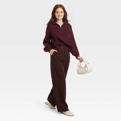 Add comfort and style to your cold-weather wardrobe with this Quarter-Zip Pullover Sweater from A New Day™. This solid-color ribbed sweater is made from a heavyweight fabric blend for warmth and a hint of spandex for flexible wear that moves with you. Perfect for layering up or wearing solo on chilly days, the pullover sweater is designed with a collared neckline, a quarter-length zippered front and long balloon sleeves for a statement-making look.