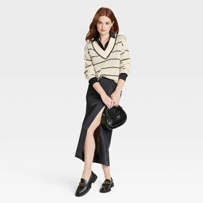 From cozy days at home to running errands, this V-Neck Pullover Sweater from A New Day™ will become a favorite in your wardrobe. This long-sleeve V-neck sweater features a knitted construction for a textured look, along with ribbed cuffs and hem for a snug fit. It’s crafted from lightweight fabric to keep you moving through the day in absolute comfort, while the simple design makes it easy to pair with a variety of bottoms in your closet.